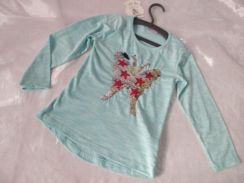 512003/2 Кофточка детская Цвет бирюза Пайетки переворачиваются и меняется цвет бабочки Размер 116,122, 128 Производитель Турция