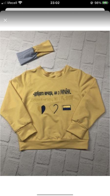 Дитячі кофти/світшоти 💙💛 Напис вишивка Не кошлатиться ,тканина приємна😍 Не жарка,Не парка! В комплекті пов'язочка🥰 Розмір 116-122,122-128,128-134,134-140,140-146см Ціна 250грн