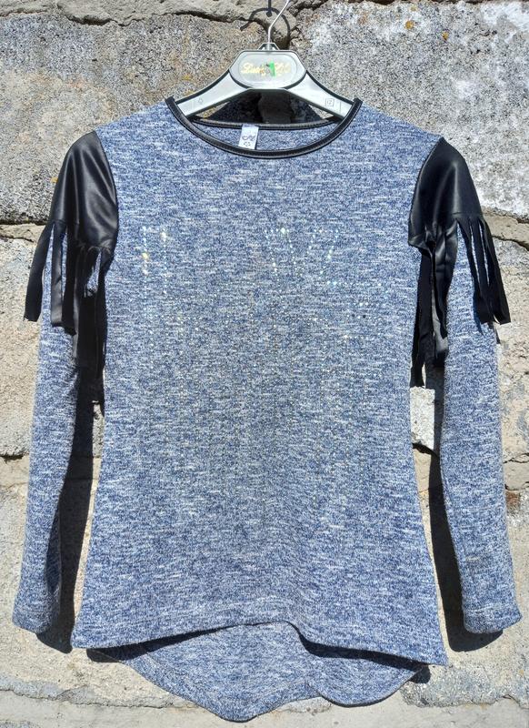 Качественная стильная туничка с оригинальными плечиками На рост 128 Надпись из страз love целая, фото не передает Замеры Длина 45/58 Пог 33 тянется Плечи 31 Рукав 43 95 % хлопок Турция В очень хорошем состоянии Уп,НП