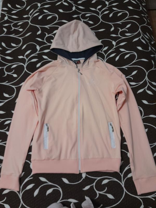 Кофта (бобка) спортивная на замке на девочку 14 лет, фирмы Code. Замеры: длина 59см, полуобхват груди 43см, длина рукава от горловины 75см.