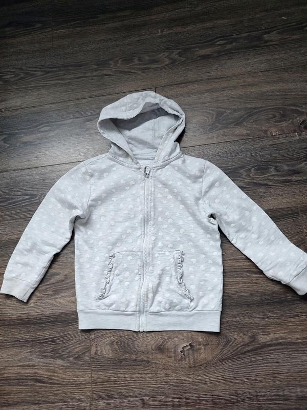 Кофта на блискавці,тепленька,з капюшоном,спереду 2 кармани,на зріст 122. Заміри: довжина 41см,рукав від плеча 38см,ширина під руками 38см,плечі 32см. Якісь гарна,стан хороший.