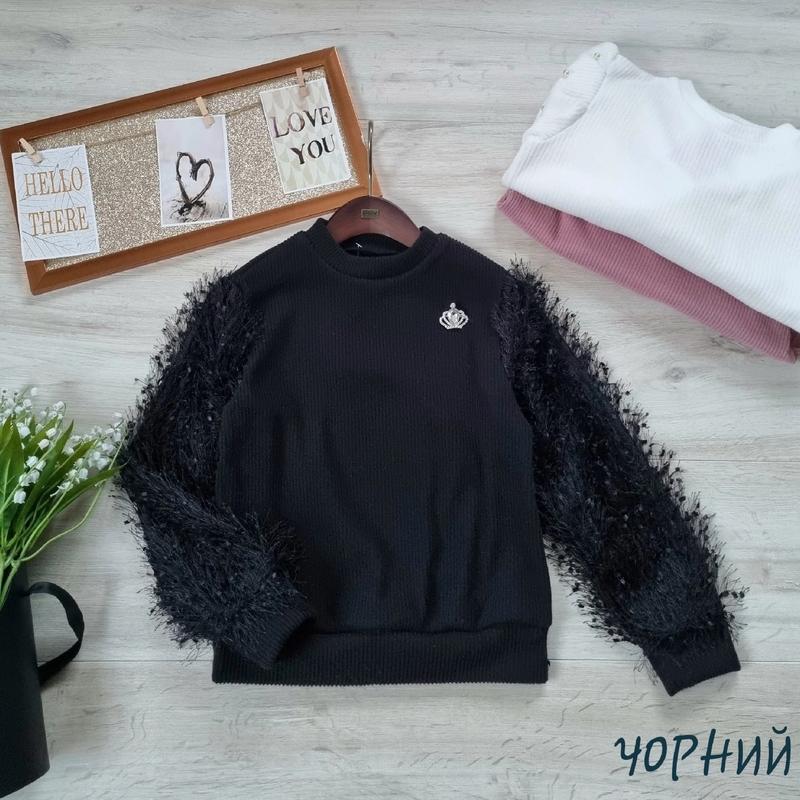 Ландыш Ніжна кофтинка для дівчинки, Тканина трикотаж рубчик з ангорою,дуже якісна і приємна до тіла рукавчик прикрашений бахромою брошка відстібається і може відрізнятися Колір чорний РЕКОМЕНДУЮ 128(1 шт)-довжина 45,рукав 43,пог 39 140(1 шт)-довжина 50,рукав 48,пог 41