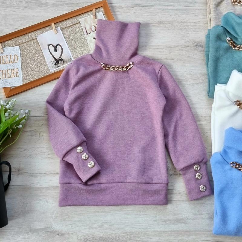 НАЯВНОСТИ Теплий гольфик тканина плотна ангора украшен цепочкой и пуговицами РЕКОМЕНДУЮ!!! 128(2 шт)-длина 44,рукав 40, пог 33 134(2 шт)-длина 46,рукав 43, пог 35 140(1 шт)-длина 47,рукав 44, пог 36 146(2 шт)-длина 49,рукав 47, пог 37 152 браузер-длина 51,рукав 51, пог 39 158(2 шт)-длина 53,рукав 52, пог 40 +-1 см