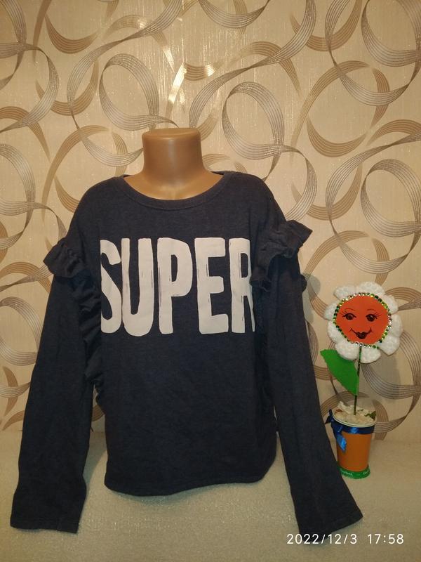 Кофточка-реглан Next с начесиком на девочку,рассчитана на 13лет(158р).Цвет синий,с белой надписью.Состав ткани:60%- котон,40 % -полиестер.Кофточка достаточно теплая.Без нюансов.Замеры по запросу