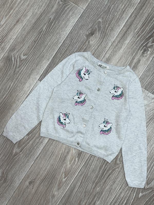 Кардиганчик с единорогами Состояние отличное 🏷️H&M 4-6 лет Длина 37. ПОГ 34. Рукав 43