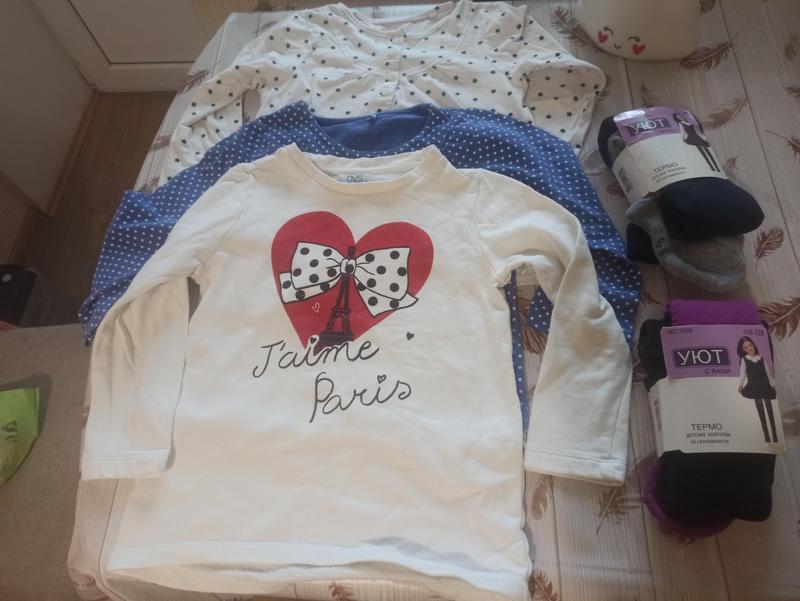 продам речі дві коттонові кофточки одна з утепленням ( біла ) дві пари махрових колготок нові всього 5 речей ,ціна за все доп фото та заміри надам при потребі,пишіть колготи нові 2 пари,кофти бу .на деяких є катушки ,без дефектів