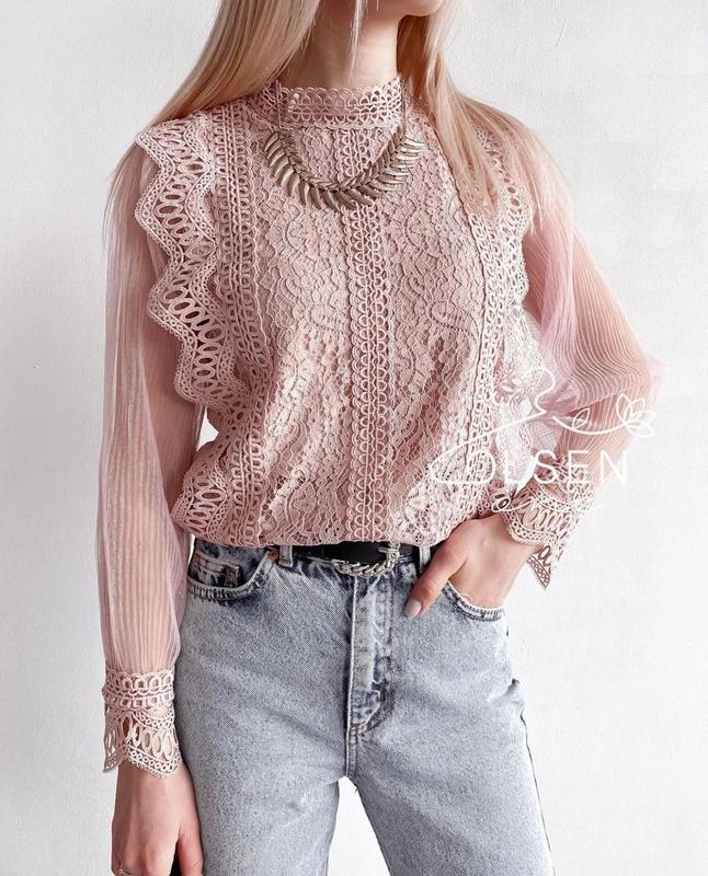 Симпатичная ажурная блуза рукавчик евросетка ззади застегивается на пуговицу цвет черный подойдет и на взрослого 42/46 158-164(6 шт)-длина 57, пог 42,рукав 58 +-1 см ландш
