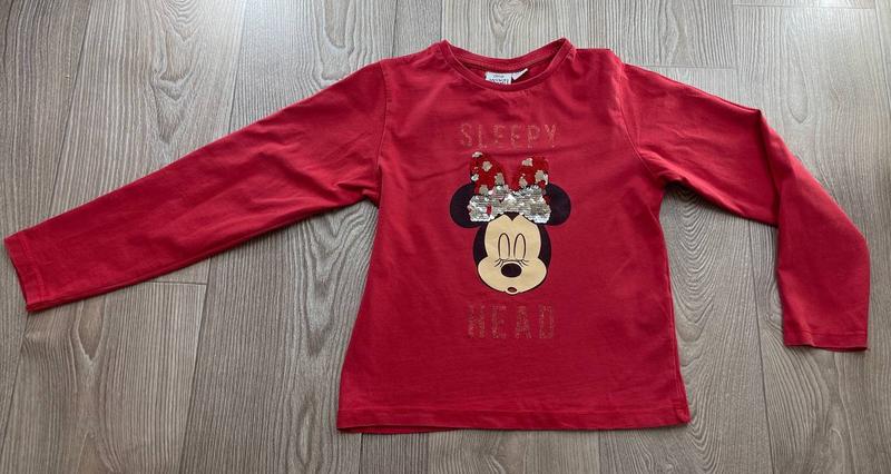 Лонгслів для дівчинки червоного кольору PRIMARK Disney🛍️❤️🔥🥰🥰🥰 Розмір - на 5-6 років / на зріст 116 см. Виробник Турція. Кофта з тонкого трикотажу з принтом Мінні Маус з пайетками та написом. Круглий виріз шиї з неширокою резинкою. Додаткові заміри: повна довжина 42 см, ширина плеч 29 см, довжина рукава 42 см, напівобхват грудей 35 см (повний обхват 70 см), напівобхват талії 33 см (повний обхват 66 см), напівобхват стегон 35 см (повний обхват 70 см).