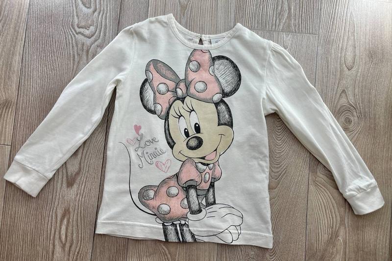 Лонгслив для дівчинки молочного кольору з принтом Мінні Disney🛍️❤️🔥🥰🥰🥰 Розмір - на вік 4-5 років / на зріст 110см. Склад : 100% бавовна. Виробник Китай. Лонгслів з трикотажу з великим принтом спереду. Круглий виріз шиї з застібкою на гудзик ззаду. Рукава з манжетою. Додаткові заміри : повна довжина 42 см, ширина плеч 28 см, довжина рукава 36 см (з них висота манжети 4 см), напівобхват грудей 33 см (повний обхват 66 см), напівобхват талії 31 см (повний обхват 62 см), напівобхват стегон 33 см (повний обхват 66 см).