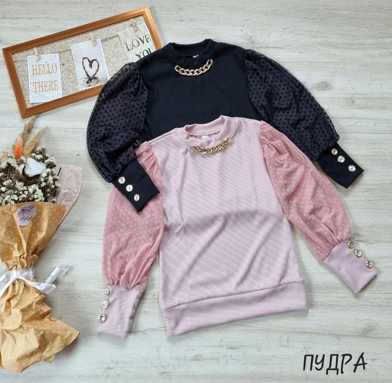 Ніжна кофтинка виконана з тканини рубчик+євро-сітка прикрашена ланцюжком 128(2 шт)-довжина кофтинки 48,пог 35,рукав 43 134(2 шт)-довжина кофтинки 50,пог 36,рукав 45 140(2 шт)-довжина кофтинки 51,пог 38,рукав 47 146(2 шт)-довжина кофтинки 52,пог 39,рукав 51 152(2 шт)-довжина кофтинки 54,пог 40,рукав 53 158(2 шт)-довжина кофтинки 55,пог 42,рукав 55 +-1 см
