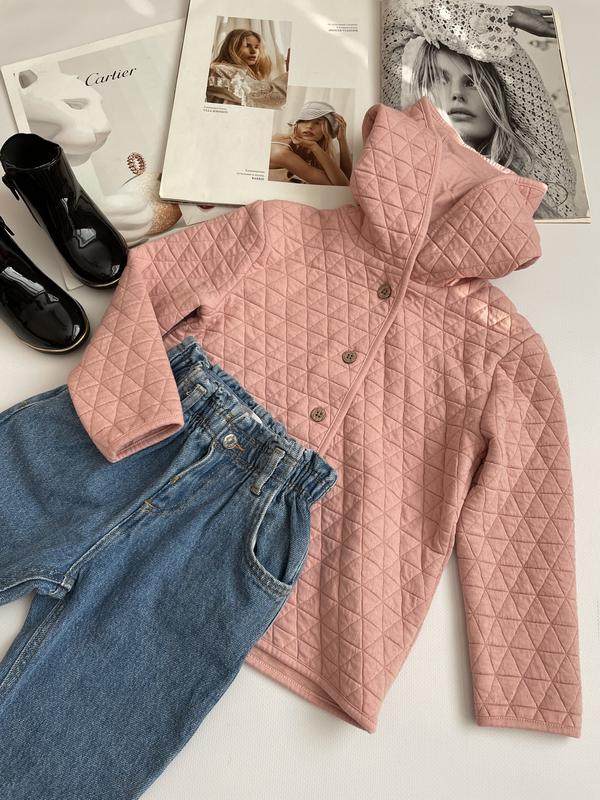 Милая, нежного цвета ,качественный трикотаж Без подкладки. Весна-лето. Длина рукава 33,5 см. Полуобхват под руками 33 см. Общая длина по спине 40 см.