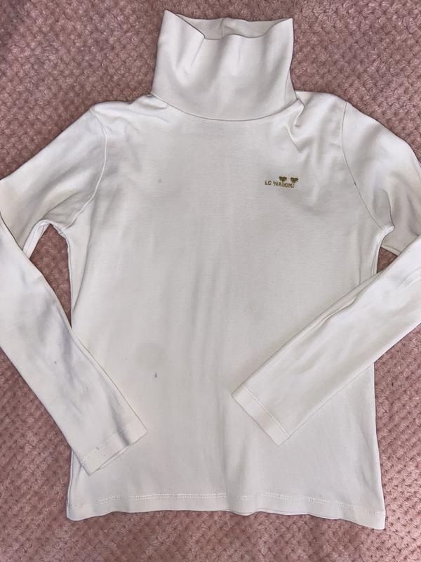 Гольф белый Присутствующие маленькие пятна и дирка маленькая сзади на рукаве - виден на фото Замеры также на фото