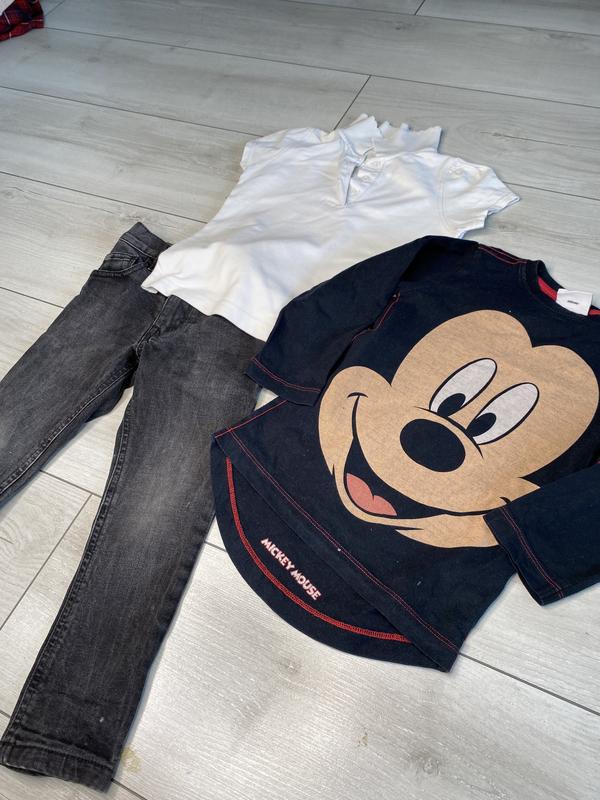 Футболка довжина 37, ширина в грудях 32, Кофта Disney довжина 41, рукав від плеча 34, ширина в грудях 32, Джинси next довжина 57, шаговий 41, талія 26 та є утяжка