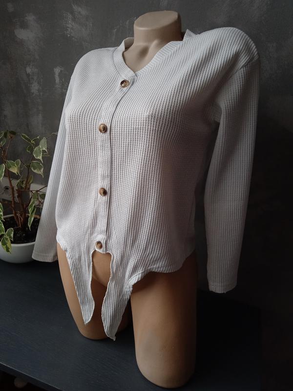 Кофта в почти идеальном состоянии. Есть одна маленькая затяжка с левой стороны на груди. Она почти незаметна. Заміри на фото. Очень классная текстура ткани квадратиком)