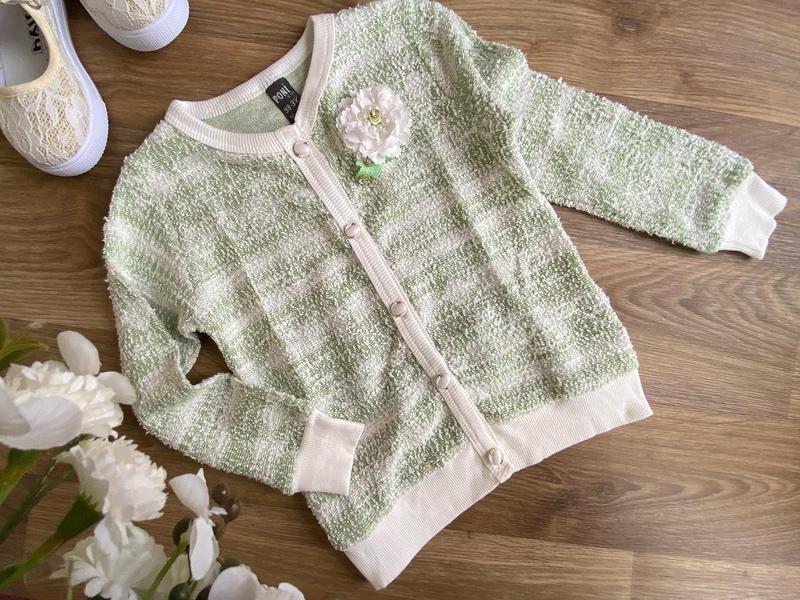 Красивая и практичная кофточка для девочки, дополнит образ и защитит в прохладную погоду.Модель в красивом оливковом цвете с манжетами и поясной резинкой в молочном цвете.Декорирована брошью цветком с жемчужинами и камушками.Брошка снимается. Размеры: 3р (98см): длина 42, пог 30,рукав 37см 4р(104см):длина 43, пог 31,рукав 38см 5р(110см):длина 45,пог 32,рукав 42см 6р(116см):длина 46, пог 32,рукав 45см 7р (122см):длина 47,пог 34,рукав 46см