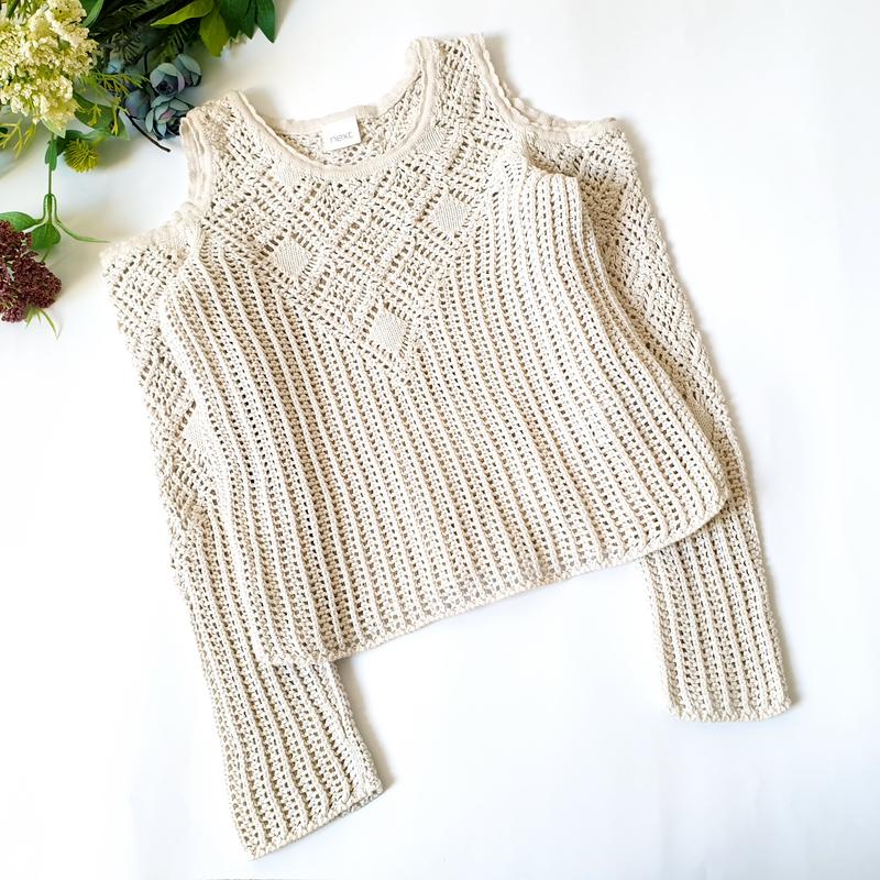 Модная кофта ажурной в **пки с открытыми плечами в отличном состоянии, 100%cotton, по наборке 6 лет (длина 38,ПОГ 30, рукав от горловины 44,5)