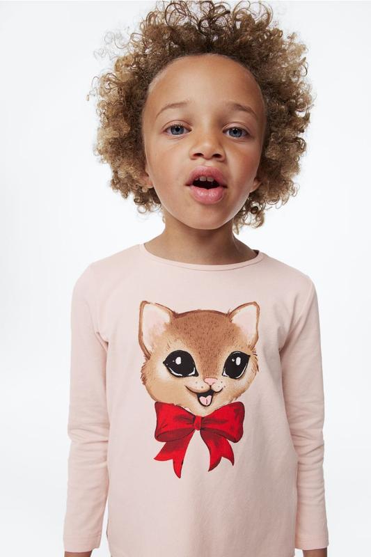 Детская кофта лонгслив для девочки. Лонгслив из мягкого хлопкового трикотажа. Круглый вырез горловины. H&M. р.110/116 - 4-6 лет: рукав от плеча 41, длина 44, ПОГ 33