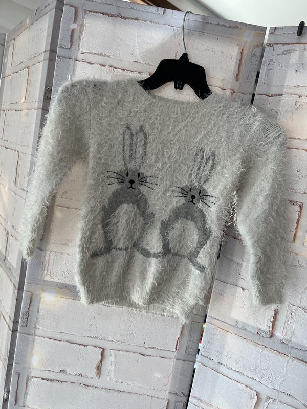 М'яка, приємна стильна кофточка із зайцями на 5/6 років Стан дуже гарний