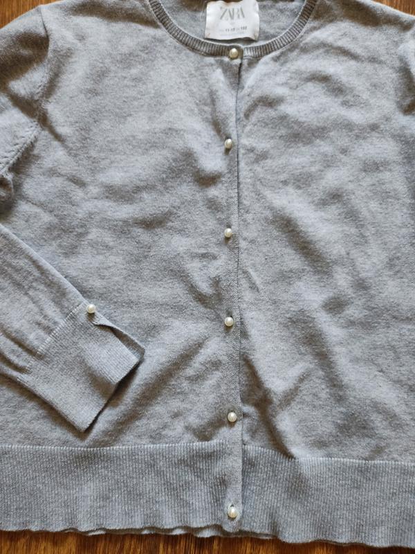 тонкая коттоновая кофточка с жемчужинами, в идеальном состоянии, есть чуточку микрокатки, поскольку рос б/у, пятен нет длина 48 рукав 49 пог 44