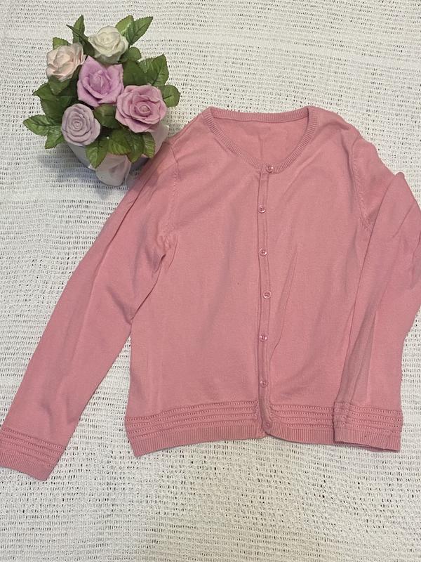 Новая, красивая розовая кофточка на девочку 9 лет. Фигурно связана по низу рукава, переда и спинки. Очень приятная к телу.