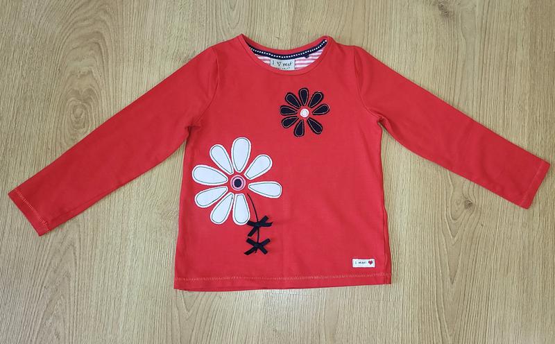 Лонгслив Next на девочку, оригинал с официального сайта (Англия), б/у. Размер 2-3 года (на рост 98 см). Состав: 100% хлопок, очень мягкий трикотаж. Рисунок - аппликация, украшенная бантиками. Качество отличное. Состояние очень красивое. Цена - 90 грн. Замеры: длина - 38 см, ширина подмышками - 30,5 см, длина рукава от плеча - 36 см, длина рукава от горловины - 41,5 см.