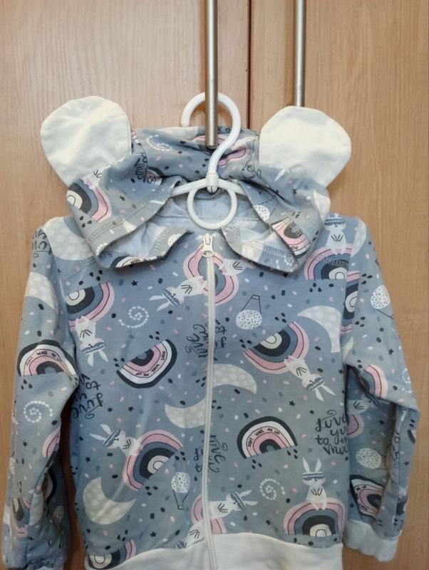 Кофта с капюшоном с ушками, очень милая, на молнии.