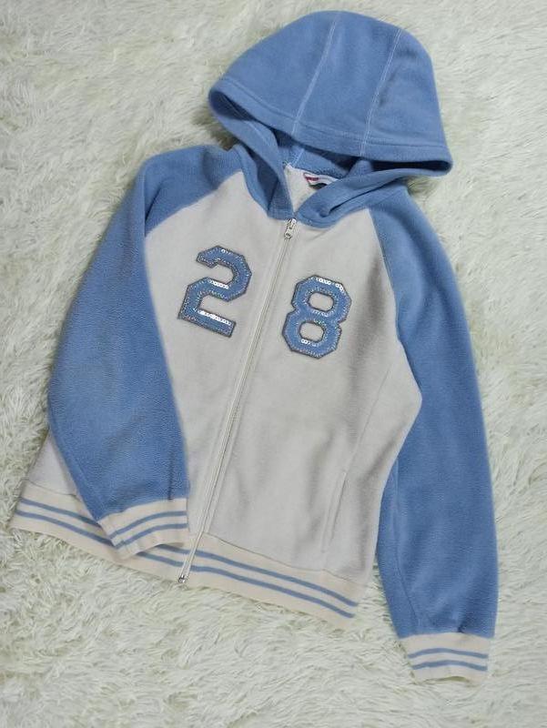 Кофта с пайетками цифрами в очень хорошем состоянии, без нюансов. Флис средней плотности. Удобный капюшон. Длина 52см, ПОГ 44см, рукавчик от горловины 58см. Покупайте и носите с удовольствием!)