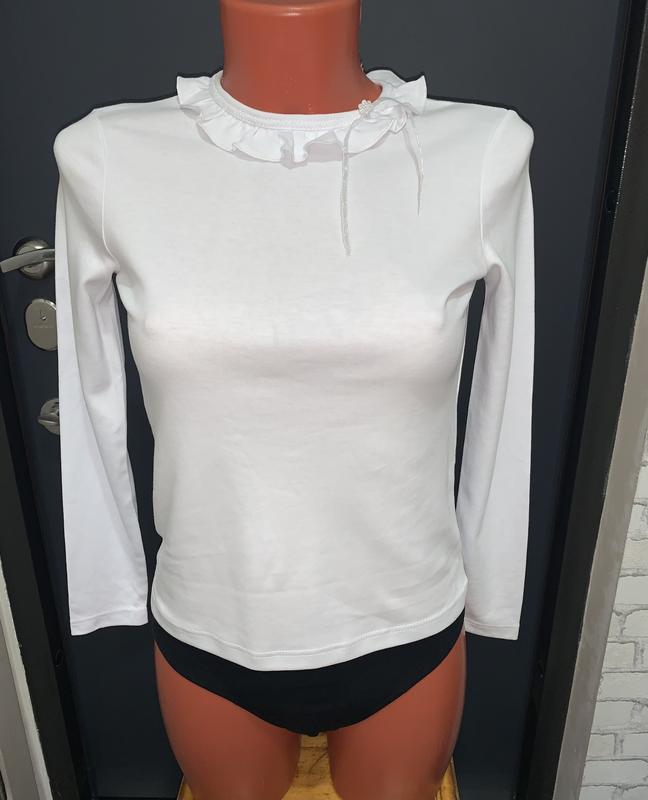 Белая кофточка с красивым воротничком Выглядит стильно и нарядно Цвет белый, без желтизны Замеры на фото Кофточка подходит на 152 - 164