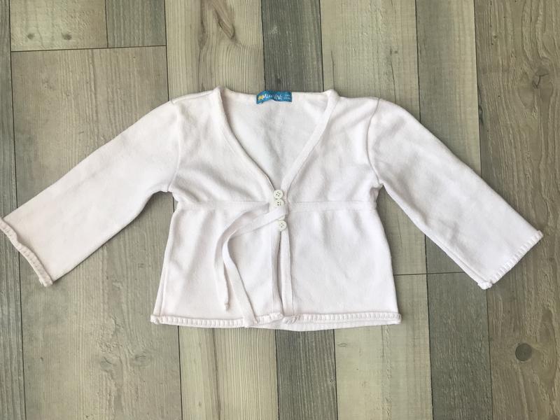 Очень нежная кофточка, подходит для возраста +/-2 года. На пуговичках и завязках. Без дефектов.