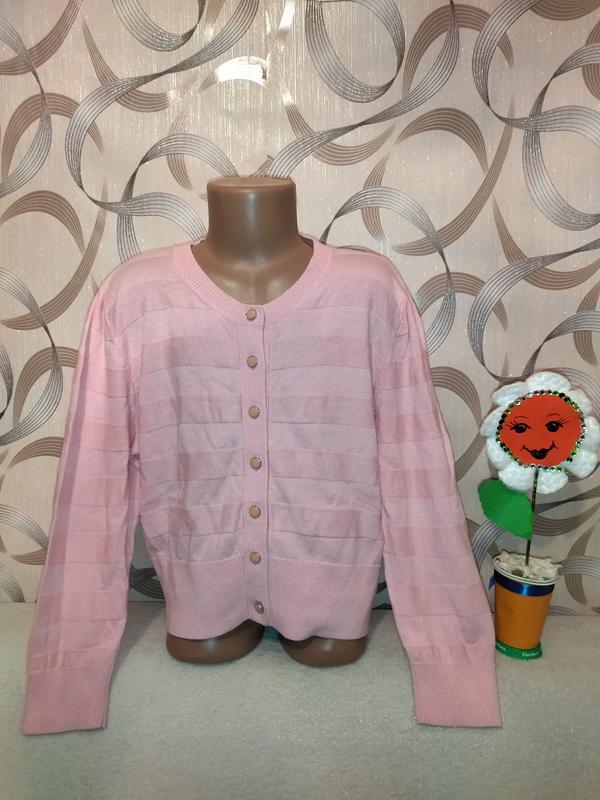 Кофточка-кардиган на пуговках для девочки от Tu,возраст указан 10лет.Цвет розовый.Состав:60%-коттон,20%-Viscose,20%-полиамид.Ткань тянется.Без нюансов.Замеры по запросу