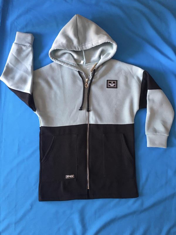 Теплая удлиненная кофта с начесом для девочки на молнии с капюшоном и карманами