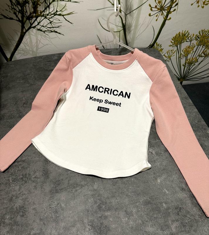 Крутой лонгслив для маленьких модниц🥰. Размеры: 134. Натуральная ткань очень хорошего качества, приятная на ощупь. Фасон приталенный, немного укороченный. Очень красиво смотрится с джинсами любого кроя. 134: длина - 44см ширина - 34см рукав (от плеча) - 46см рукав (в.шов) - 34см рукав+плече(от горловины) - 55см