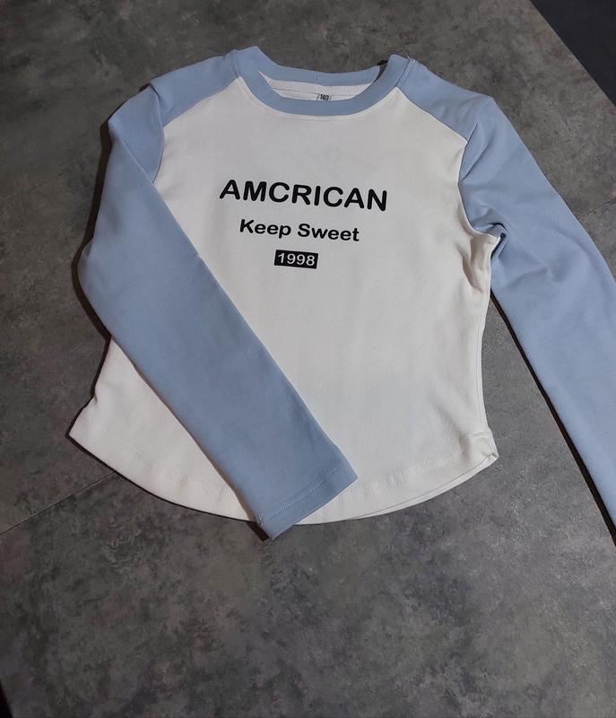 Крутий лонгслів для маленьких модниць🥰. Розмір 134. Натуральна тканина дуже гарної якості, приємна на дотик. Фасон приталений, трохи укорочений. Дуже гарно виглядає з джинсами будь-якого крою❤ 134: довжина - 44см ширина - 34см рукав(від плеча) - 46см рукав(вн.шов) - 34см рукав+плече(від горловини) - 55см