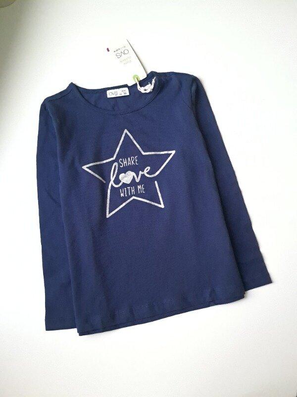 Лонгслив, реглан синего цвета с принтом серебряная звезда.Склад: 100 хлопок. Замеры: длина 42, плечах 30, рукав 40, в груди 34 см
