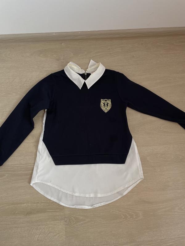 Темно-синя кофта, є декілька плям