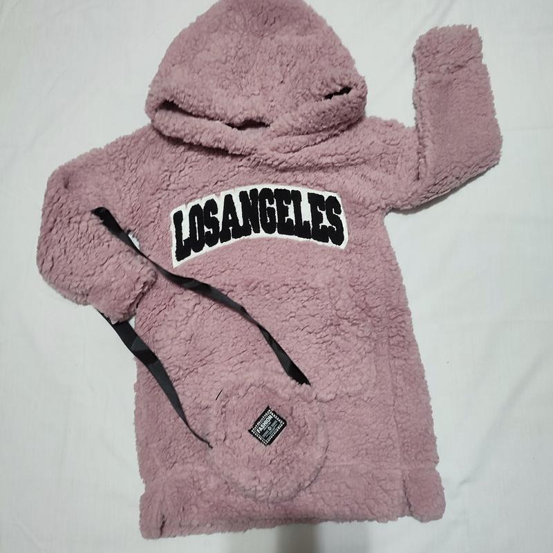 Туника с капюшоном и карманом- кенгуру + сумочка. Ткань "барашек" мягкая, теплая. В наличии розового и молочного цвета.