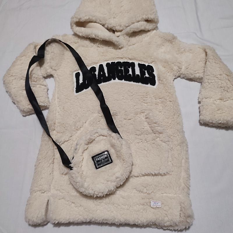 Туника с капюшоном и карманом- кенгуру + сумочка. Ткань "барашек" мягкая, теплая. В наличии розового и молочного цвета.