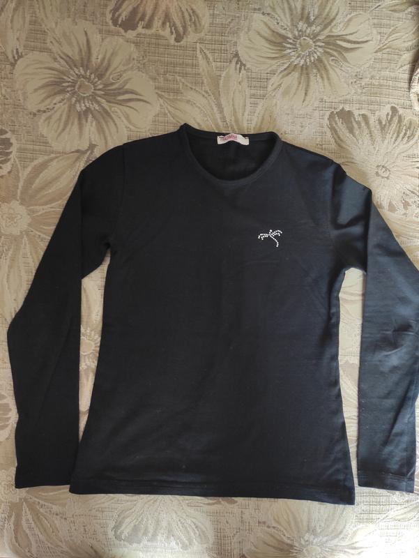 Черный девчачий лонгслив, состояние идеальное. На возраст 7-9 лет