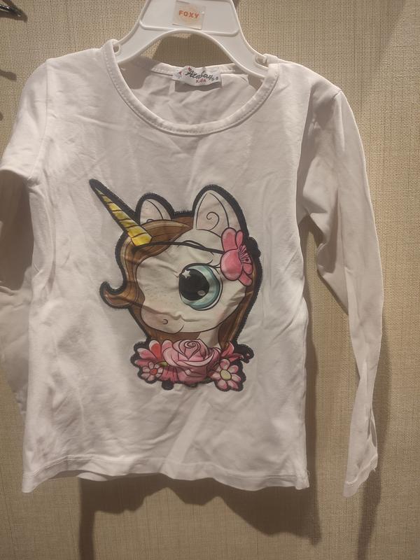 Кофта единорог. Глаз при нажатии меняет цвет. Длина от плеча 36 см.