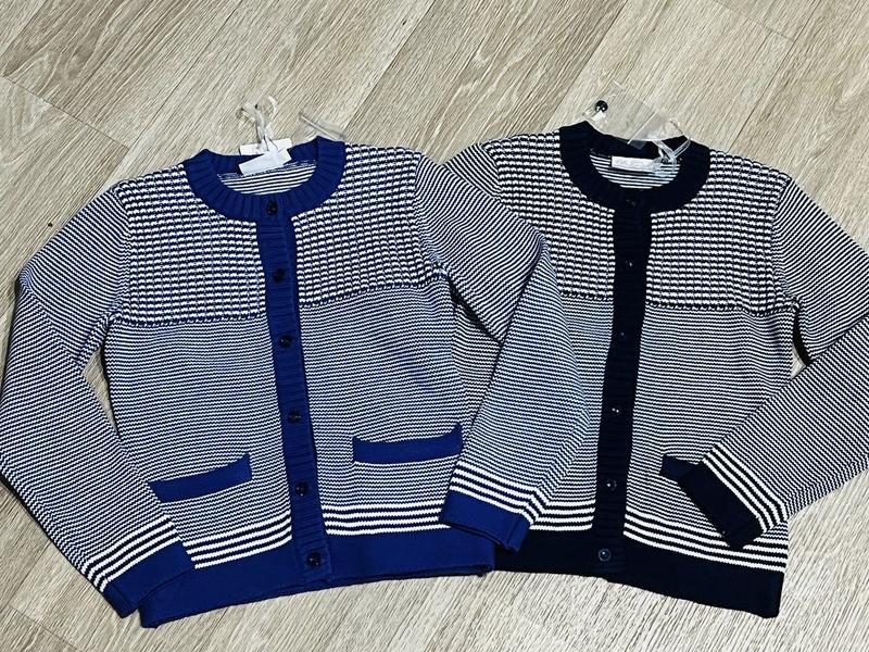 Кофточки Deloras на пуговичках, мягкие натуральные и очень теплые, плотная вязка . Идеально в школу Два цвета , черная и синяя полоска. Размерный ряд 120-130-140-150-160-170