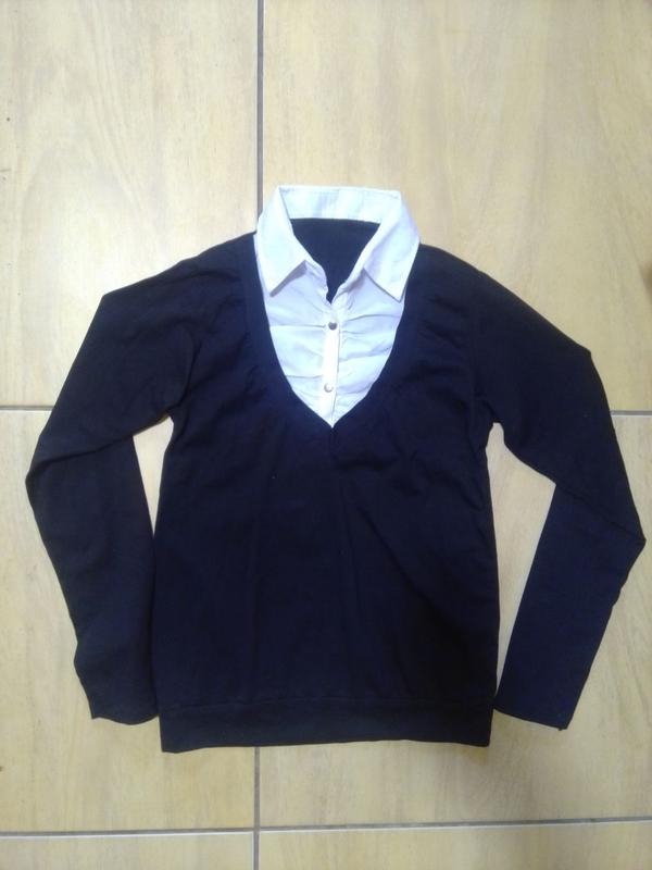 Кофта - обманка. Матеріал - стрейч кулір високої якості. Була одягнена пару раз - стан ідеальний. Колір - чорний ( на фото відтіняє синім) Виробництво - Турція. Доставка НП, УП працює безпечна оплата