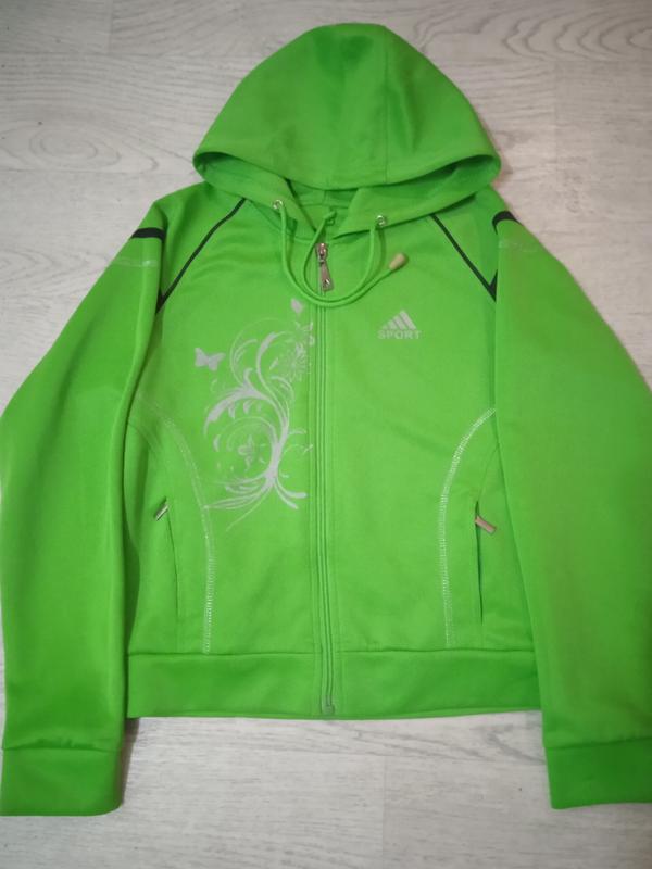 Оригинальная спортивная кофта на молнии на девочку 7-9 лет. Длина 47 см.