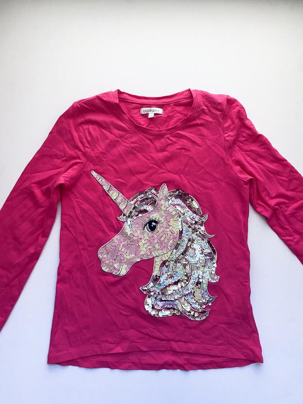Очень красивая розовая кофта с изображением единорога в центре на девочку 9-10 лет (140см) от бренда Blue Zoo (Debenhams). Единорог выполнен в пайетках. Идеальное состояние. Эффектов нет.