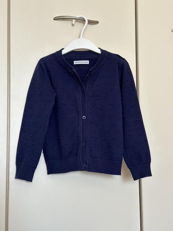 Кофта темно-синего цвета на рост 104-110см, возраст 4-5 лет.Стан без дефектов. Рукав 36см.