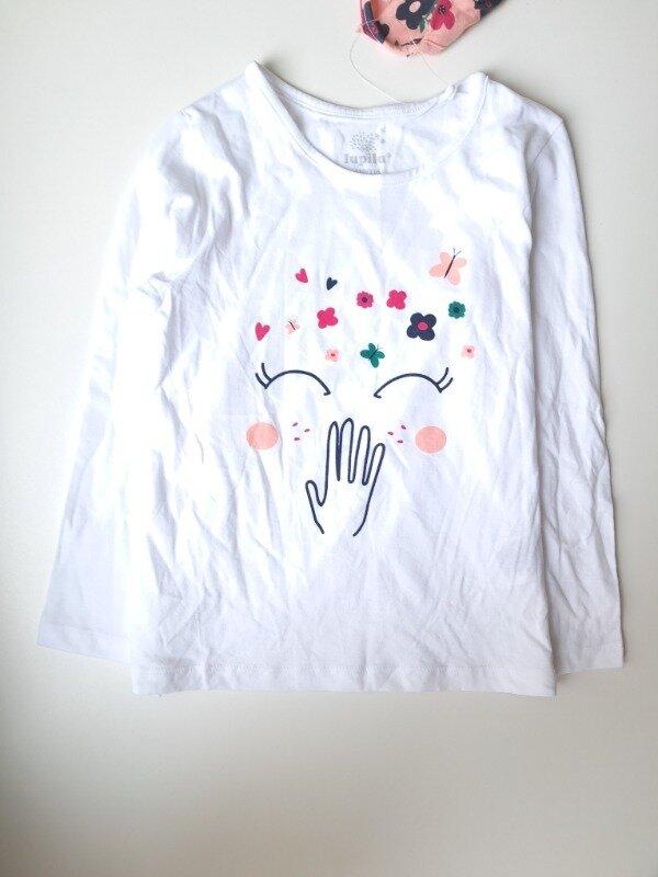Лонгслив реглан белого цвета с принтом для девочки. Состав хлопок. Замеры- длина 46, груди 30, рукав 42 см Присутствует НЕДОЛИК -запачкано пятная на последнем фото