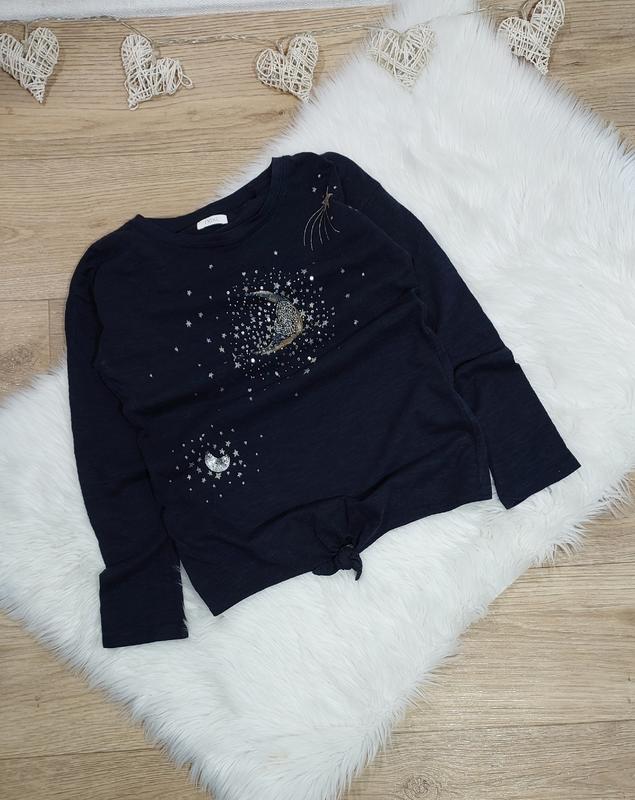 Next на 8 років (128 см), стильний реглан з блискітками і паєтками, тонкий трикотаж (100% бавовна), стан ідеальний, (довжина 52 см, напівобхват грудей 36 см, рукав від горловини 56 см)