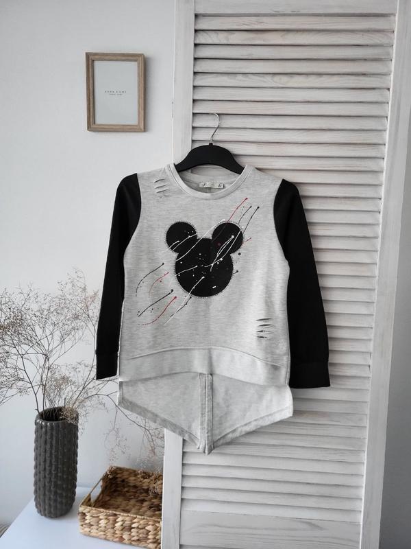 кофтинка на девочку с микки. на рост 128. длина рукава 44. длина изделия 38/57. обхват талии 36.