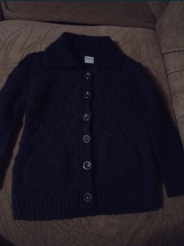 Кофта дуже тепла, темно-синього кольору, на гудзиках. Має дуже гарне плетіння косичкою. На 5-6 років. Фірма Belenay, Турція.