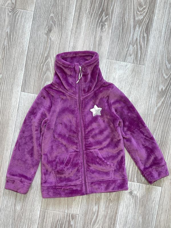 Махровая куртка-кофта с высоким горлом Есть карманы Очень тёплая и приятная на ощупь Состояние новой 🏷️Topolino 8 лет/128 Длина 49. ПОГ 37. Рукав 45