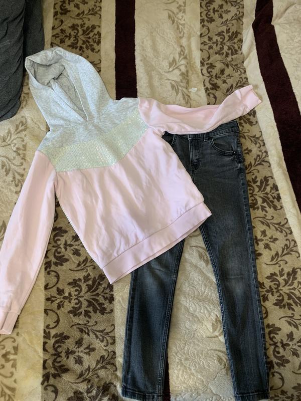 Продам 1 лотом шикарную байку некст (утепленная) имеет небольшое пятничко, которое не видно, и скинни.Шикарно смотрятся на ребенке.Джинсы написано 128,но мы носили до 134.